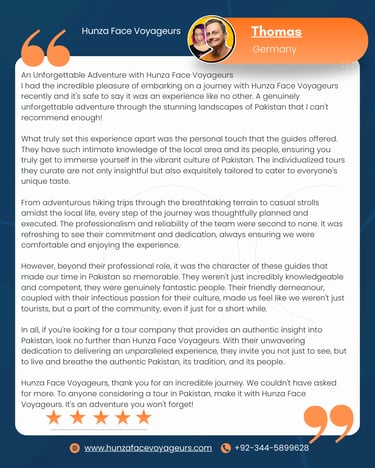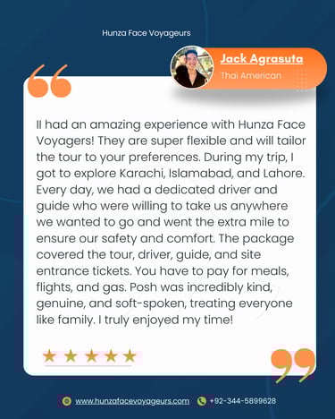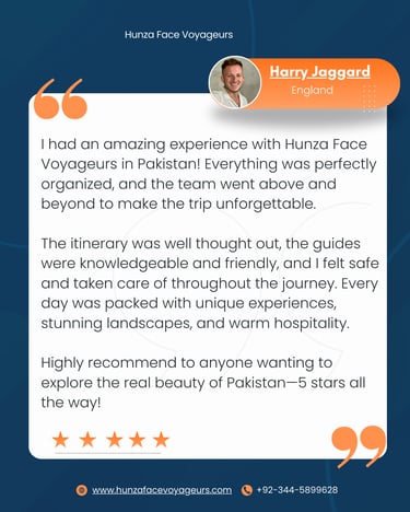 Discover customized travel experiences for every type of traveler in Pakistan. Explore stunning landscapes and rich culture with Hunza Face Voyageurs